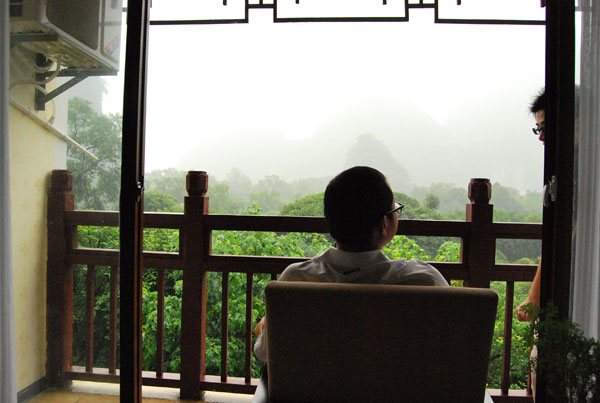 真正的開門見山,賓館陽臺上的景色讓瞬間靜謐起來
