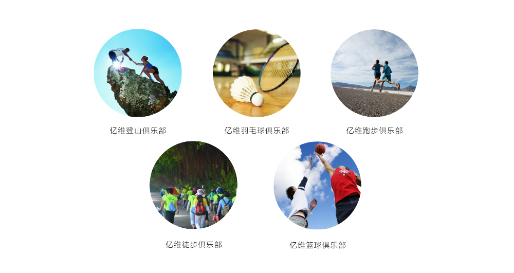 是由億維人自發(fā)組織的社團(tuán)活動組織。自成立至今,已發(fā)展成為擁有5個員工俱樂部,支持億維人日?;顒?。